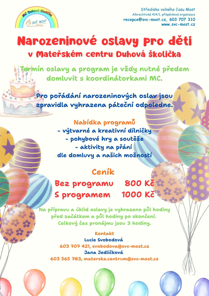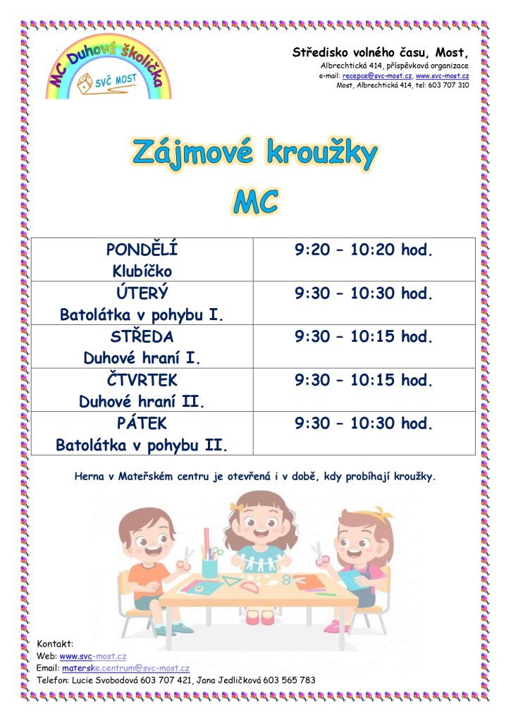 Lucie Svobodová, koordinátorka MC, materske.centrum@svc-most.cz, 603 707 421